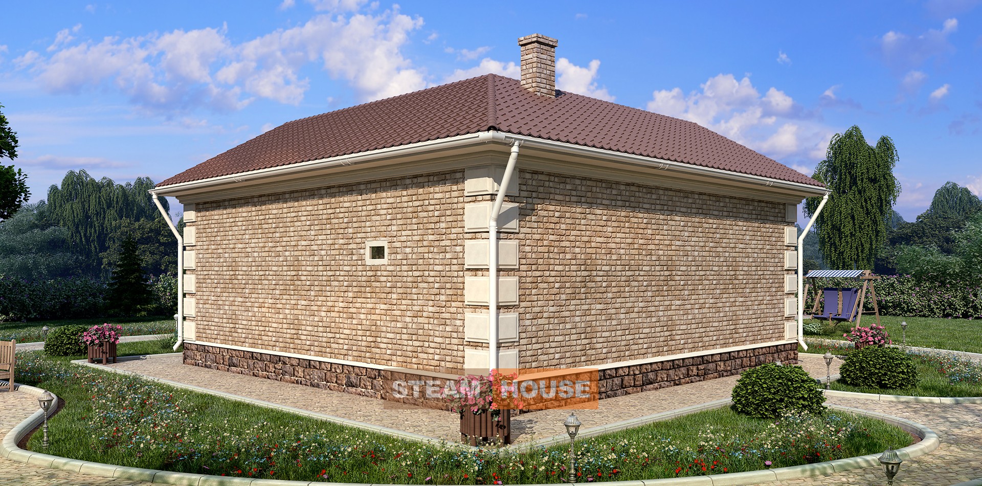 Обращаем внимание, что планировкой рассматриваемой бани предусмотрено отдельное пространство, которое Вы можете использовать для размещения тренажерного зала либо обустройства биллиардной комнаты, и крыльцо с двойным выходом (из вышеуказанного пространства и комнаты отдыха). Следует подчеркнуть, что спокойная классическая архитектура проекта «Agata» позволяет бане великолепно сочетаться с другими постройками на Вашем участке, которые могут быть выполнены почти в любом архитектурном стиле.