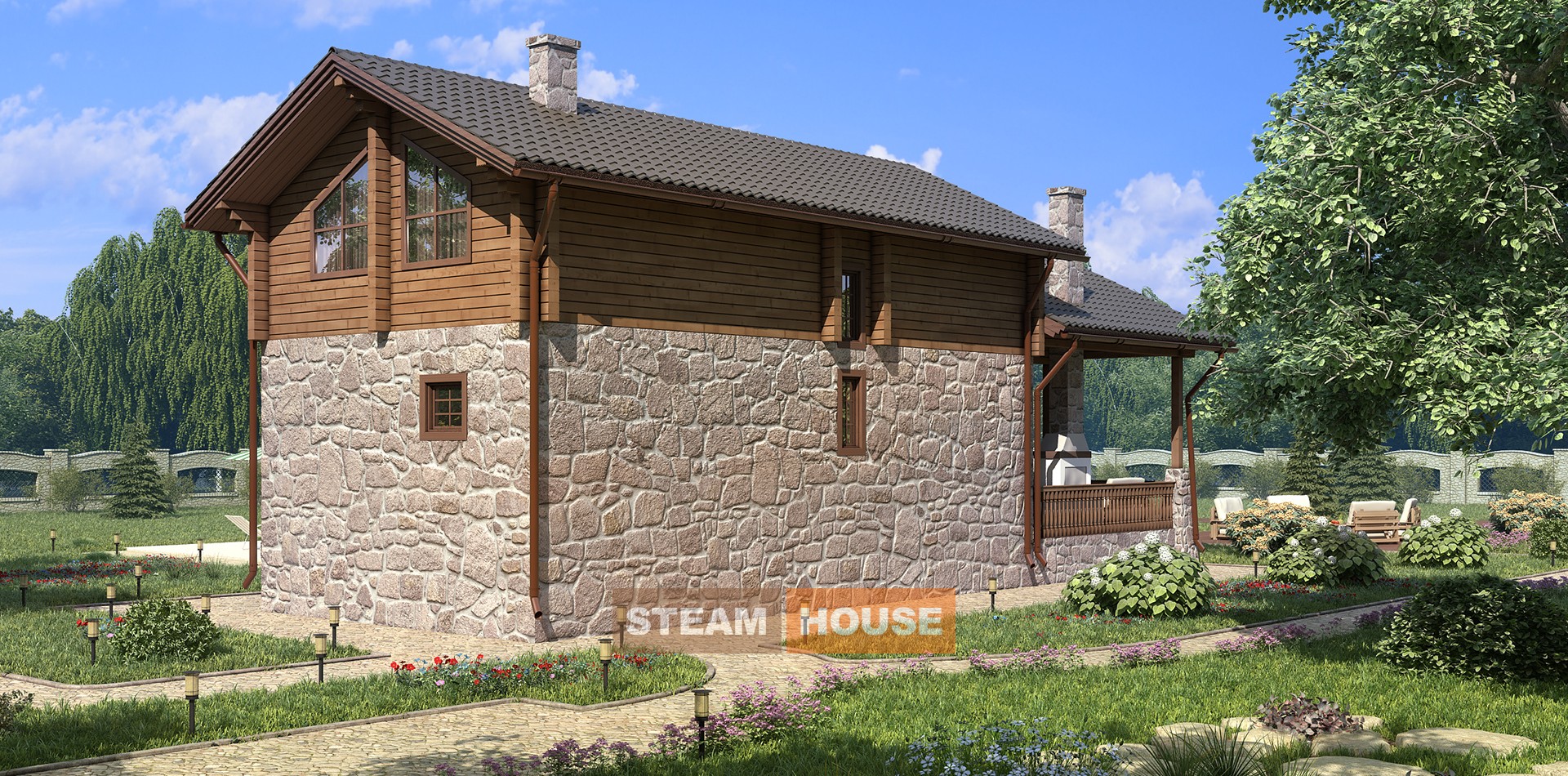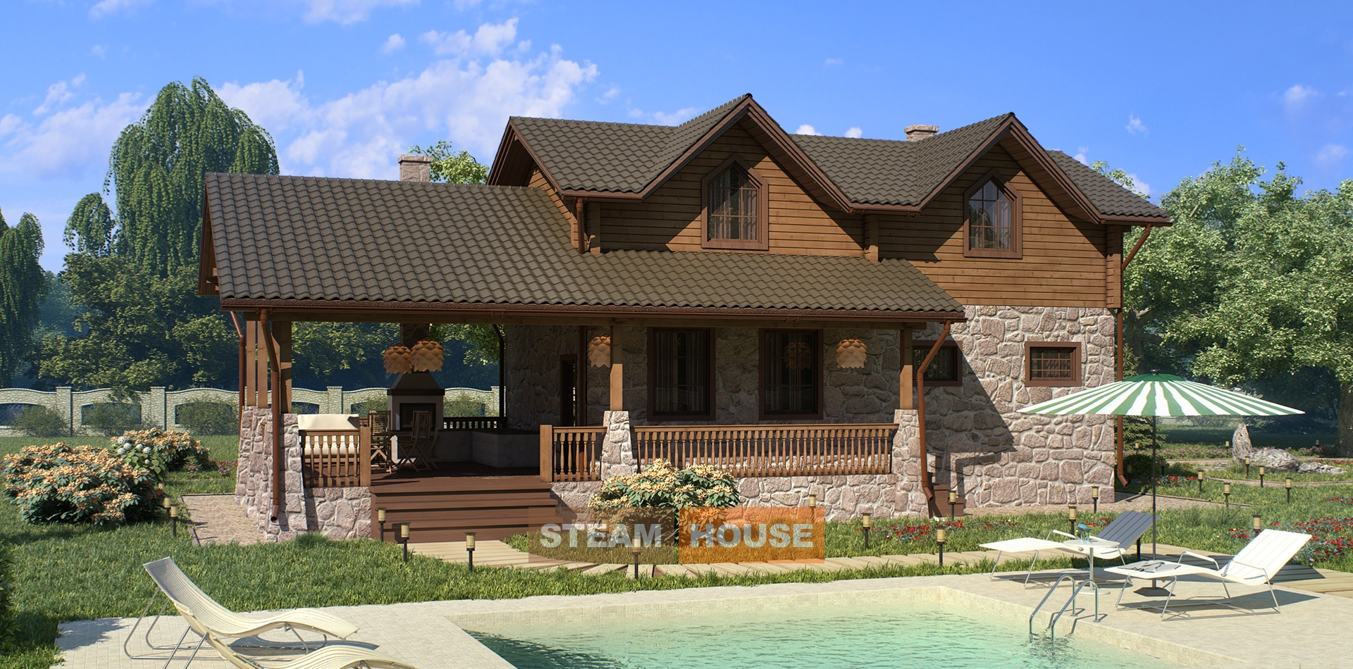 Обращаем внимание, что основной отличительной особенностью рассматриваемого проекта выступает большое крыльцо-мансарда. Оно может оснащаться при желании современной зоной барбекю. Достаточно спокойная архитектура бани «Izabela» великолепно сочетается практически с любым выбранным решением по ландшафтному дизайну Вашего участка и гармонично дополняет уже сложившийся архитектурный ансамбль. Это действительно интересный и оригинальный проект, который станет настоящим украшением и истинной гордостью Вашего загородного участка!